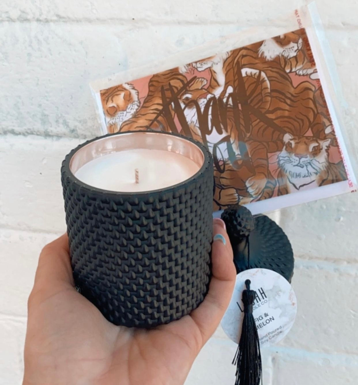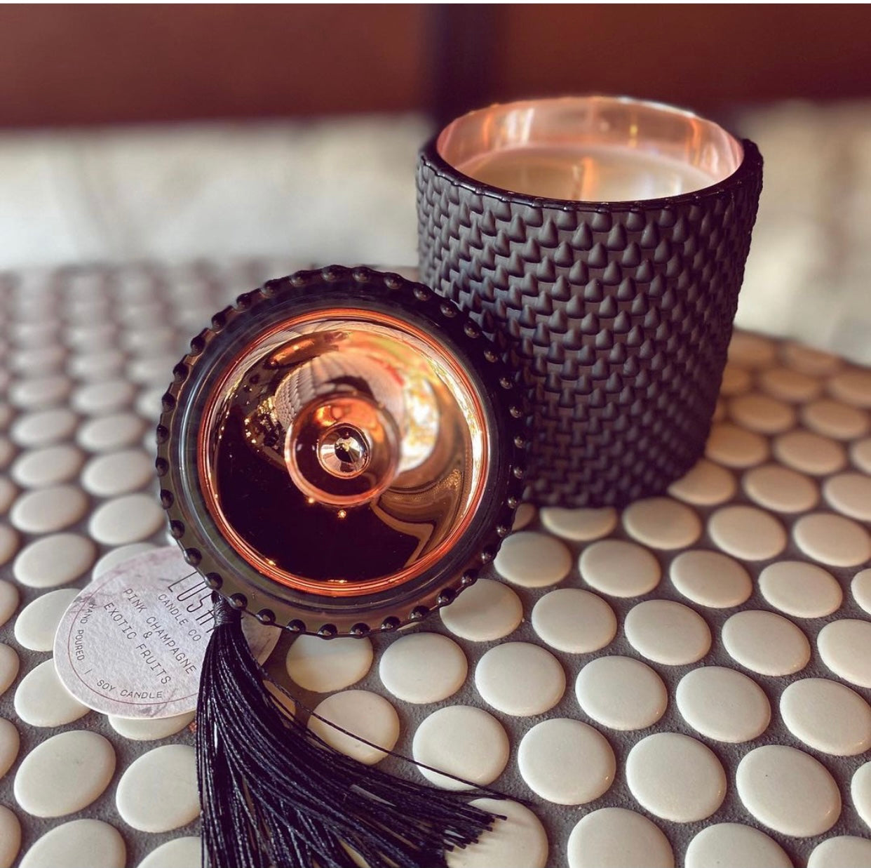 If your looking for elegance our teardrop candles are the way to go. Matte black exterior finished off with a rose gold interior.