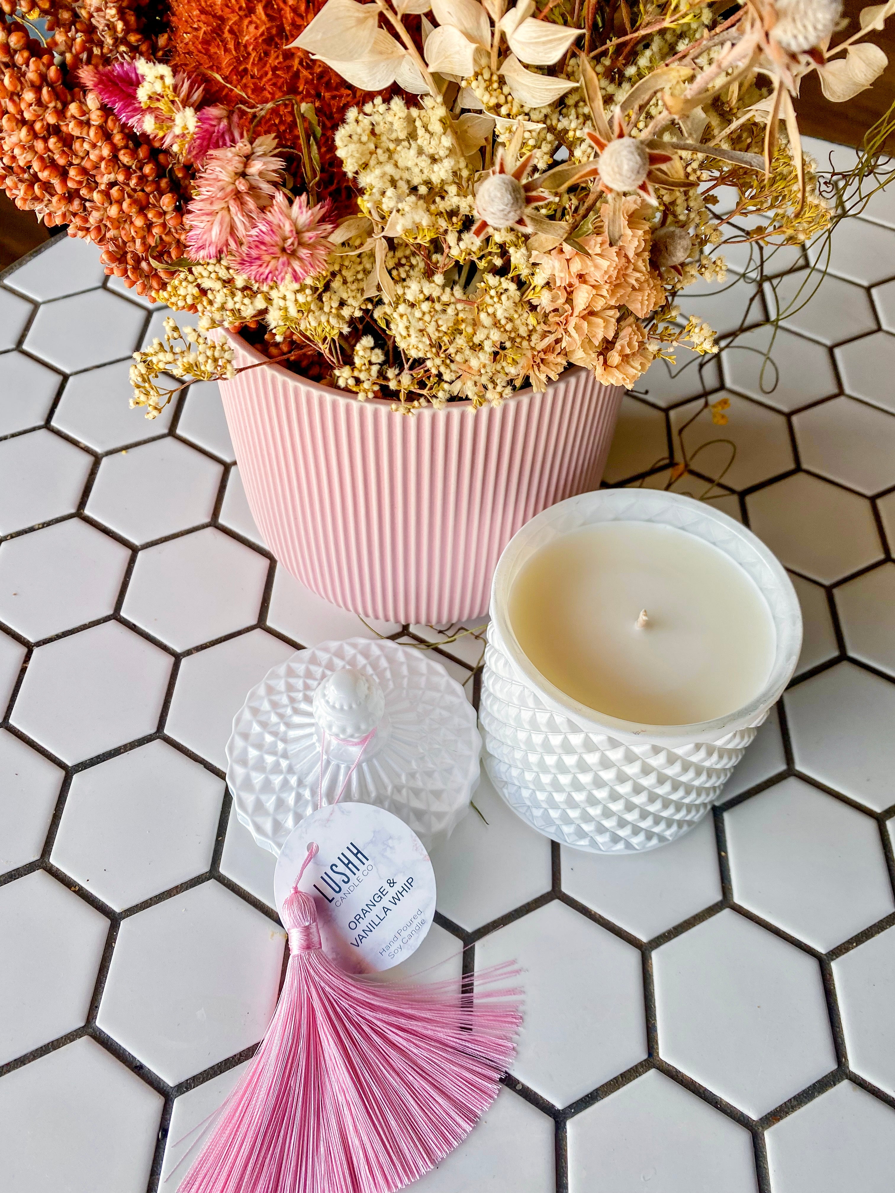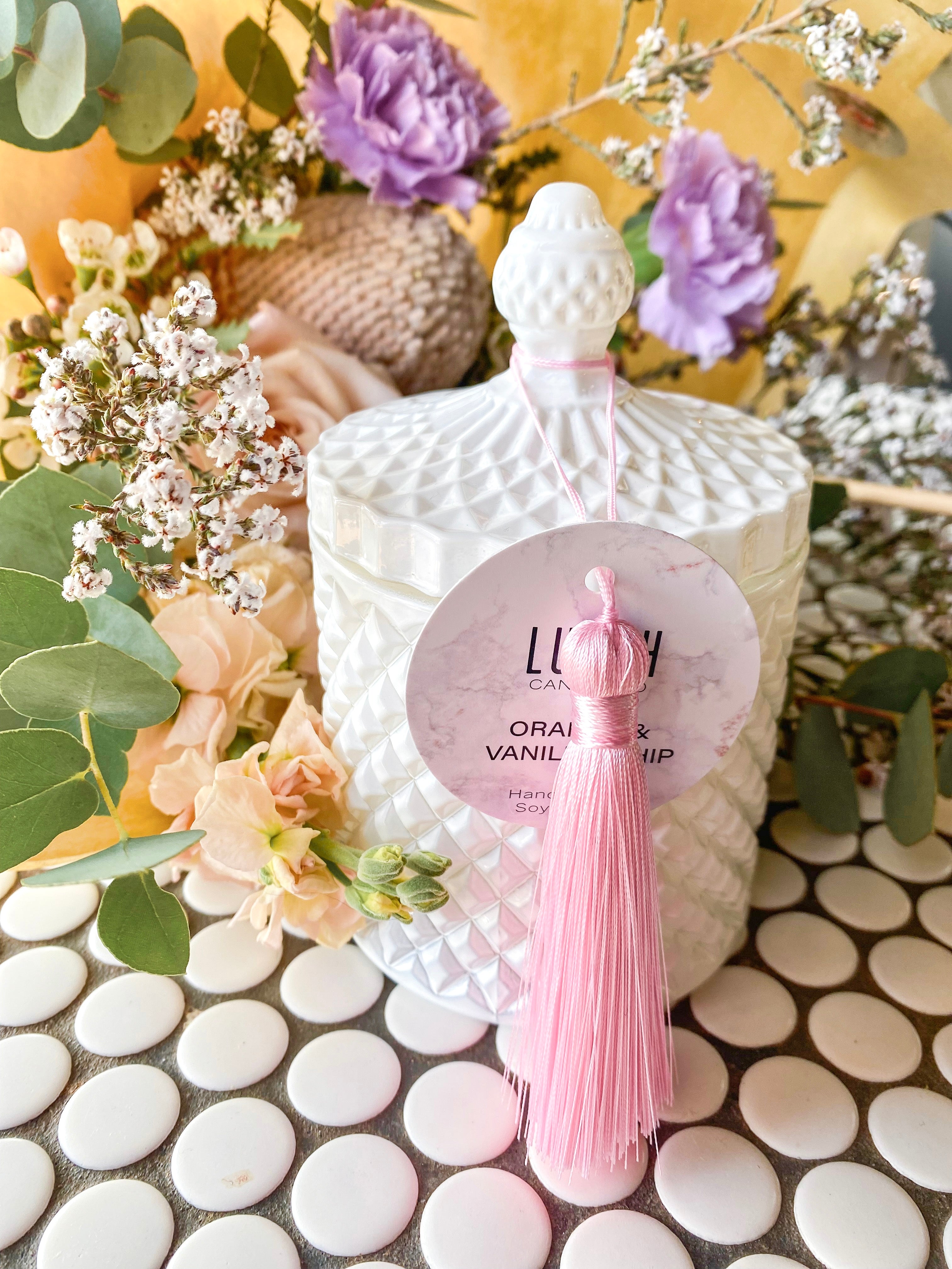 Gorgeous new diamond range glassware. Available in gloss white and gloss black. Finished off in style with a silk tassel.